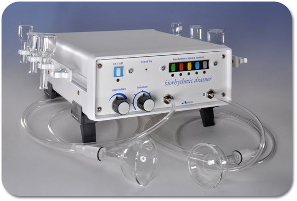 - Biodraineur™ 淋 巴活化引流仪(排水治疗仪器)的设计是针对进行高效能活血淋巴排 水治疗,其吸压排水过程,可以因需要 而调节不同的强度和节奏,通过按摩手法有效的加速淋巴能量和血液的活动能力,能消除阻碍精力充沛的障碍,对人体能量流程正常化有极大帮助。可提高针对面部 问题的治疗作用,也适用于身体淋巴引流。此外,淋巴活化引流仪亦对各项减肥治疗均非常有效。